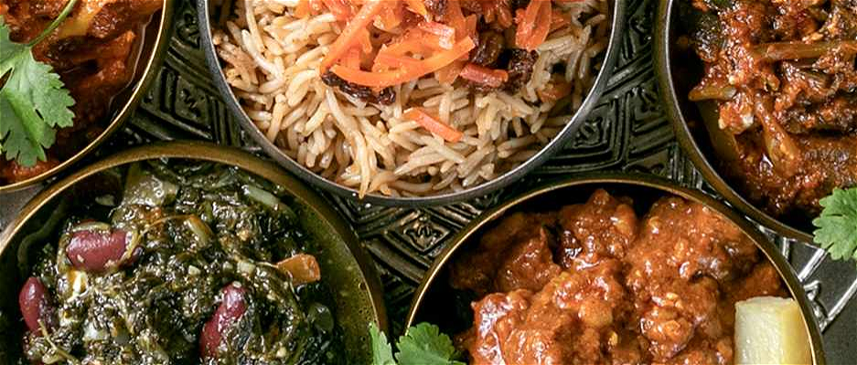Bestaande uit Afghaanse rijst (wit of bruin), mix van vier huisgemaakte bijgerechten, zes curry's naar keuze en een stuk huisgemaakt Afghaans brood